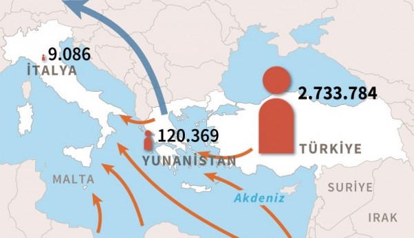 Ο συνολικός αριθμός μόνο των Σύριων προσφύγων σε όλη την Τουρκία φτάνει σύμφωνα με τα επίσημα στοιχεία τους 2.749.14. Από αυτούς, οι 574.479 περίπου βρίσκονται σε περιοχές δίπλα ακριβώς από τα σύνορα με την Ελλάδα και είναι πιο πιθανοί να αποπειραθούν είτε τώρα, είτε στο εγγύς μέλλον, να περάσουν στην ελληνική επικράτεια.