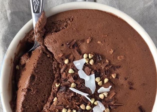 Σέρβιρε σε 4 μπολ και ρίξε από πάνω την κουβερτούρα και τα καρύδια.