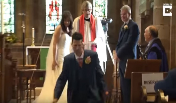 Όπως θα δείτε και εσείς, ένα ζευγάρι ήταν έτοιμο να παντρευτεί. Την στιγμή, όμως, που ο ιερέας ζήτησε τις βέρες από τον γαμπρό, τότε, εκείνος έκανε τον ανήξερο, στρέφοντας το βλέμμα του προς τον αδελφό του. Ωστόσο, ούτε εκείνος ήξερε τίποτα. Μετά από λίγο, όμως, ο γαμπρός θυμήθηκε ότι οι βέρες ήταν αφημένες στο σπίτι. Μόλις ο ιερέας του είπε να πάει να τις πάρει, ο γαμπρός έφυγε, τρέχοντας, αφήνοντας (κυριολεκτικά) στα κρύα του λουτρού τη νύφη. Φυσικά, ήταν μια φάρσα των δύο αδελφών που κατέγραψαν με βίντεο, προκαλώντας το γέλιο όλων των προσεκλημένων.